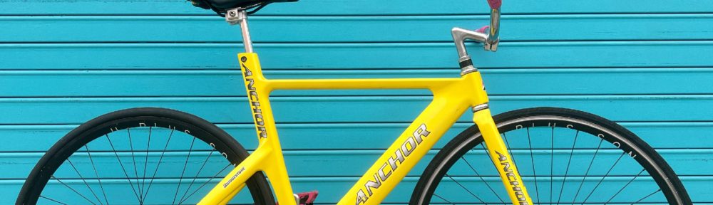 Is a carbon bike “vintage” if it’s old enough to buy beer? This Bridgestone Anchor track bike was born in 1999 (making it technically “Gen Z”) and represents their first foray into monocoque carbon frames. “FAPCPT” is a convoluted and unfortunate model name, evocative of onanistic internet slang. It’s all relative I suppose, considering the brand name is “Anchor,” a word that doesn’t convey a sense of lightness or speed (or even motion itself). Both the brand, and this bike in particular were created for the Japanese market and not with an English-speaking audience in mind. Silly names aside, this bike is a work of art, with clean, sculptured lines and a svelte profile. Read on to learn more about this rare early carbon track bike.