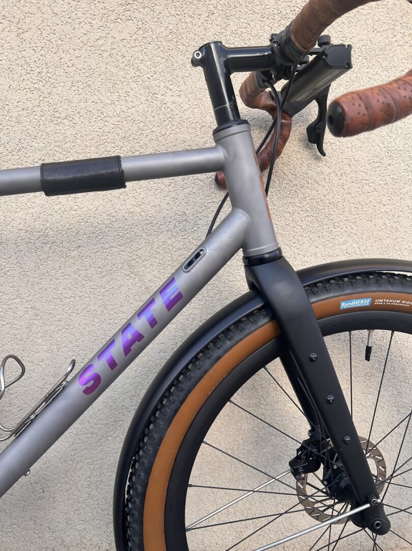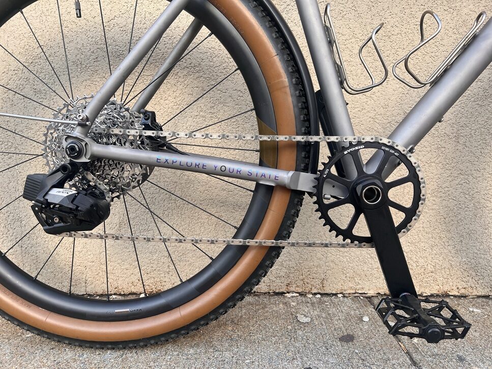 This set the stage for the options in front of me when deciding on my first Ti bike. With all due respect to custom frame builders, there’s nothing special about my body shape or my cycling needs to justify a bespoke frame. What won me over to State’s Titanium All-Road was its clearance for tires over 2 inches / 55cm (spec sheet here). I loved the ride of the Rene Herse “Umtanum Ridge” tires on my 4130 All-Road and I didn’t want to give them up. No other stock titanium frame under $2K had clearances for tires this wide, and given the great experience I had with the 4130, State was a slam-dunk. I was especially stoked to find one in my size in their Warehouse Deals section, for just under $1K.